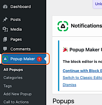 Type a forward slash (/) to add a new block. Type cta to search for the Popup Maker Call to Action Buttons block. Then click Call to Action Buttons.