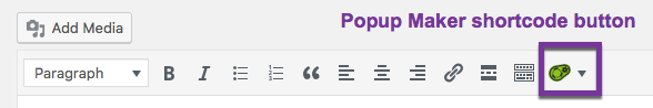 The popup classic editor includes a shortcode button that lets you add a trigger, close button, or subscription form to their popup. By default, the shortcode button is enabled within the plugin.