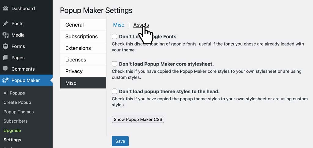 By default, Popup Maker loads its asset files one time and then saves (caches) them for later use within the plugin. Some servers running Popup Maker do not allow these script files to load properly.