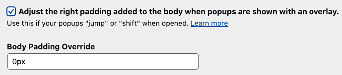 If your post or page shifts when you display a popup with an overlay, check this to adjust the post or page padding. Usually, setting this to 0px stops the shifting.