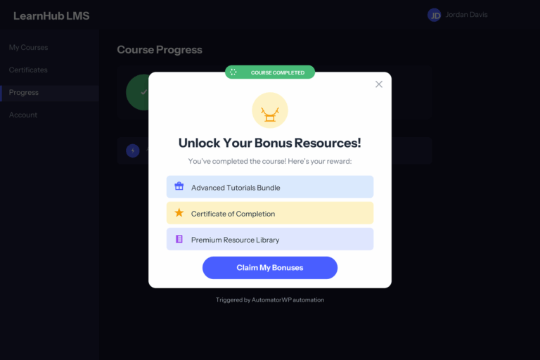 Trigger popups from any WordPress event. Use Automator's 200+ integrations to display popups based on purchases, form submissions, and course completions.